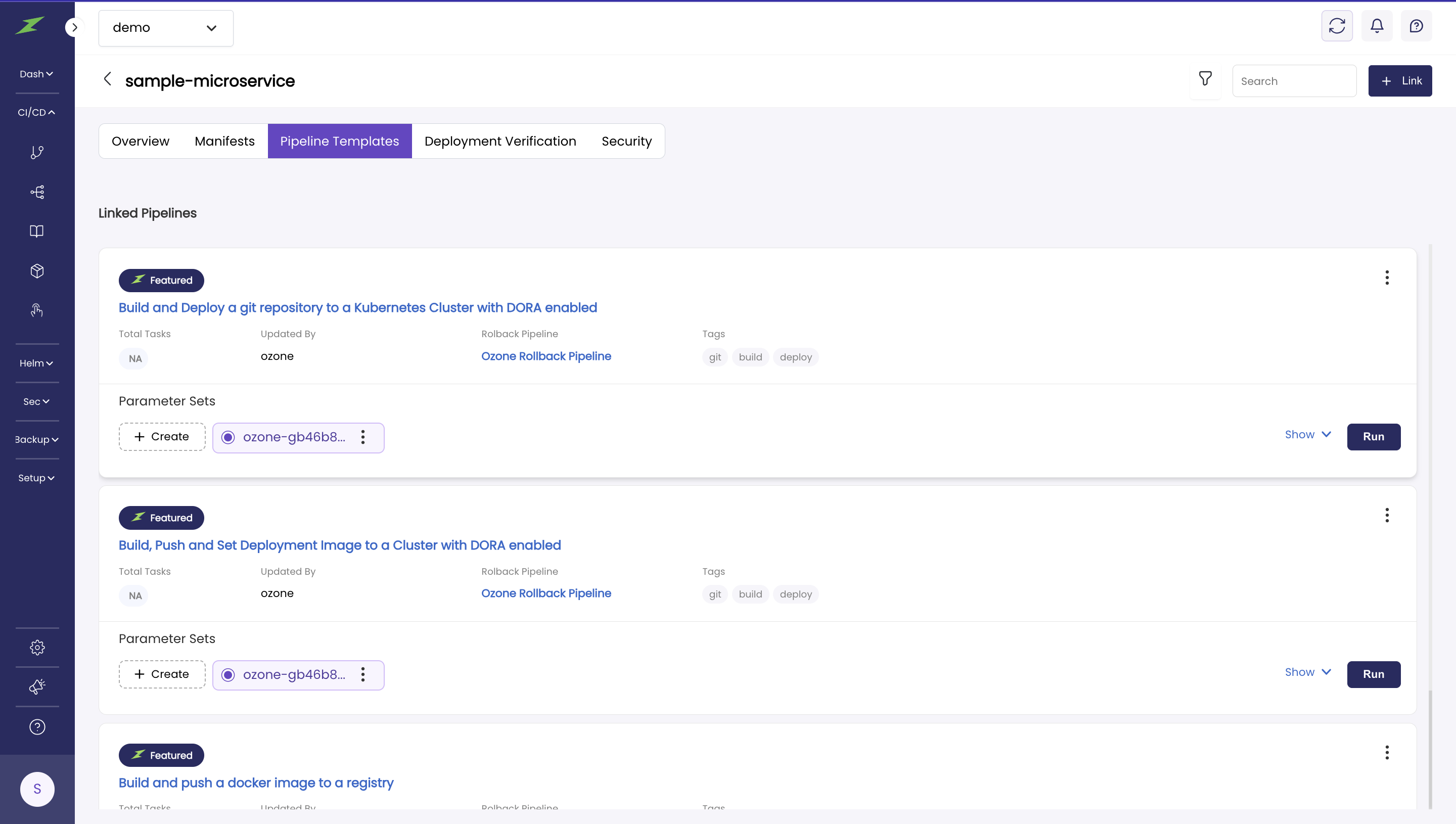 Parameter sets streamline the pipeline execution process by allowing users to define standard parameter values essential for deployment, such as the target cluster or other parameters that the pipeline requires. They encapsulate these parameters, eliminating repetitive input and ensuring consistency across deployments. Users can configure various parameters within a parameter set, tailoring them to specific requirements or cluster configurations. This flexibility enhances the efficiency and adaptability of the CI/CD workflow, empowering users to deploy their microservices with ease and precision.\
