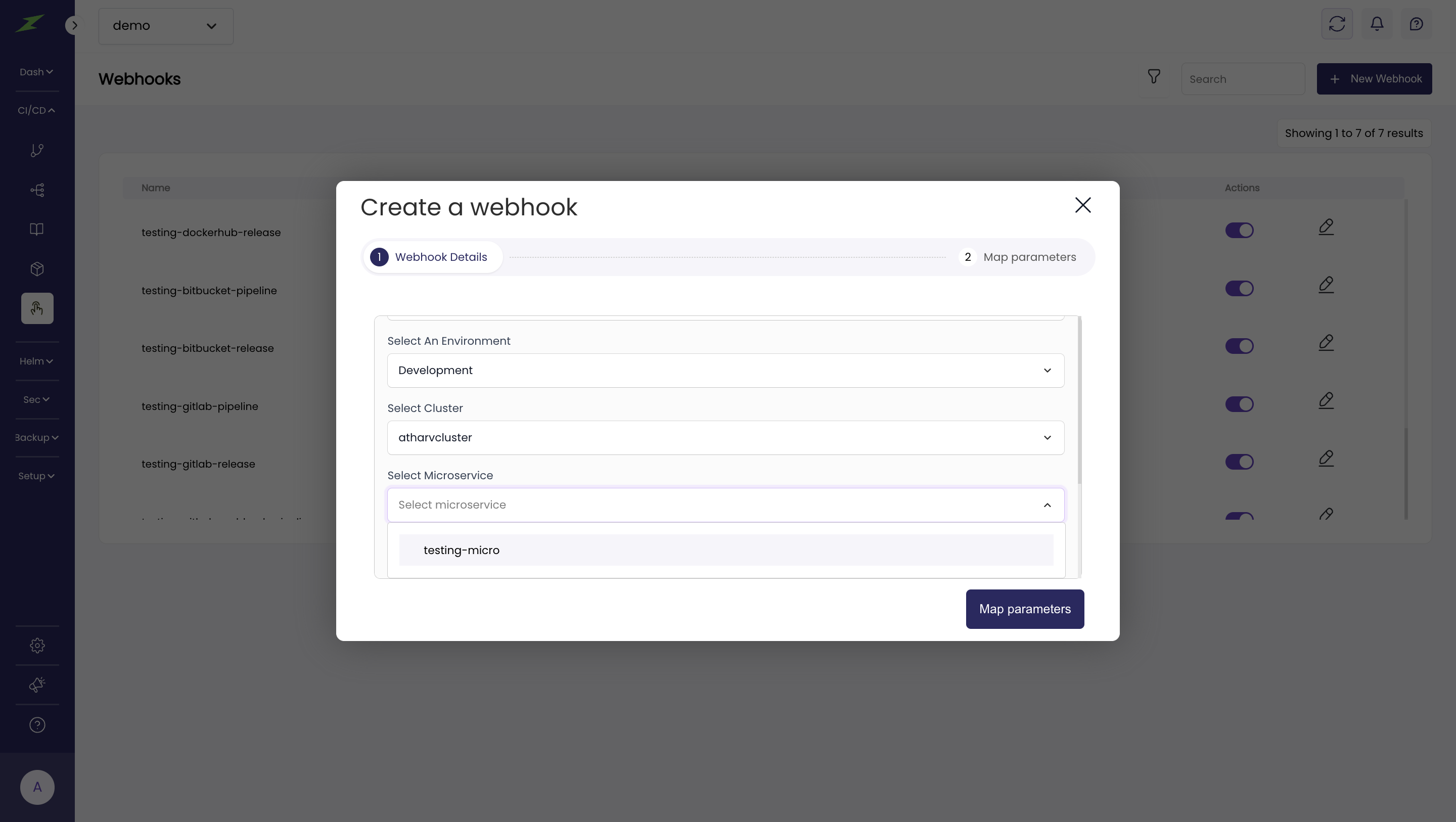 3. After selecting the pipeline, select the environment in which the webhook needs to be created\
