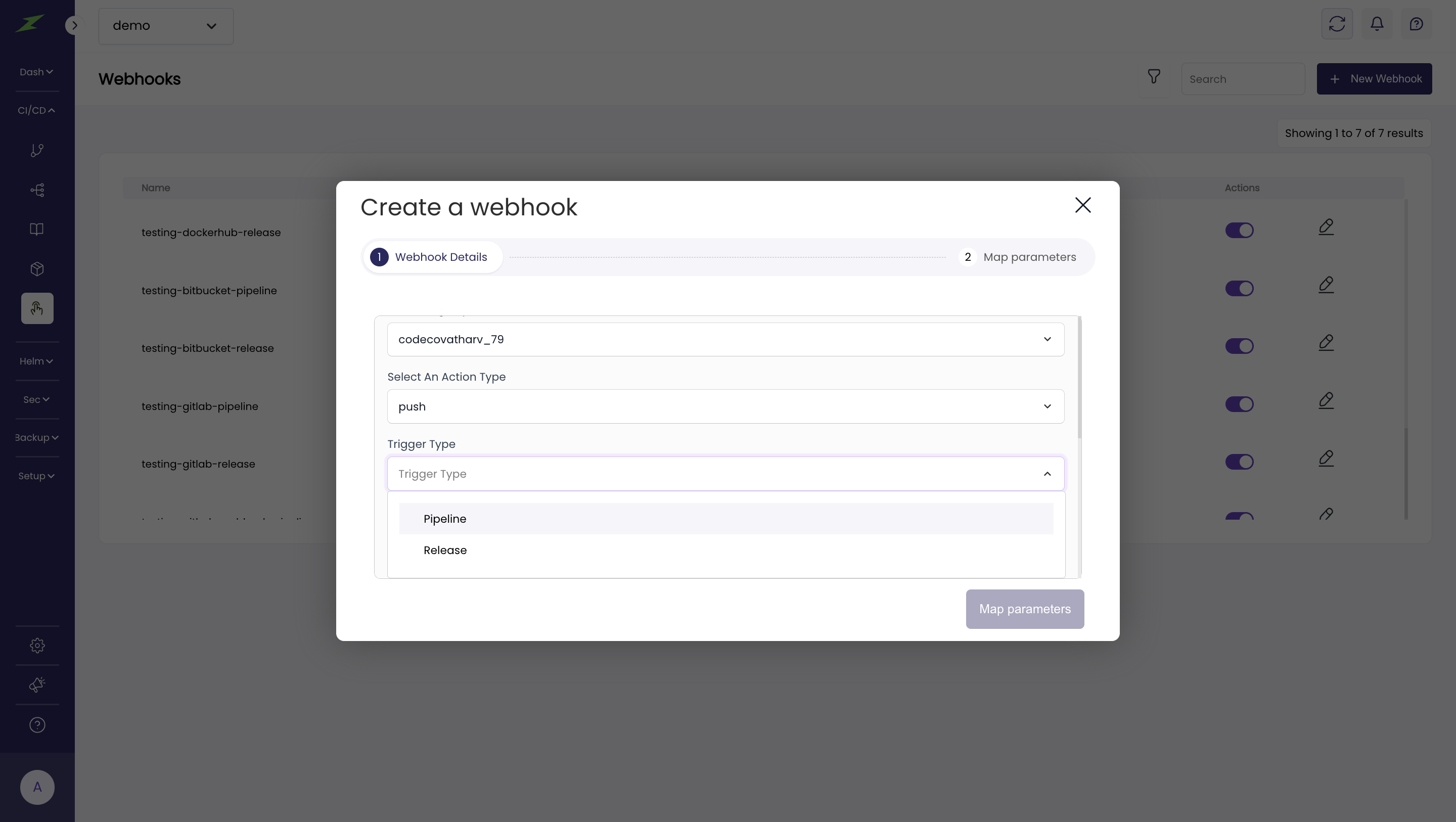 thatSuppose users want to trigger a pipeline or release on the successful push of an image on a registry on **Dockerhub,** they can create a webhook using the webhook type as Dockerhub.