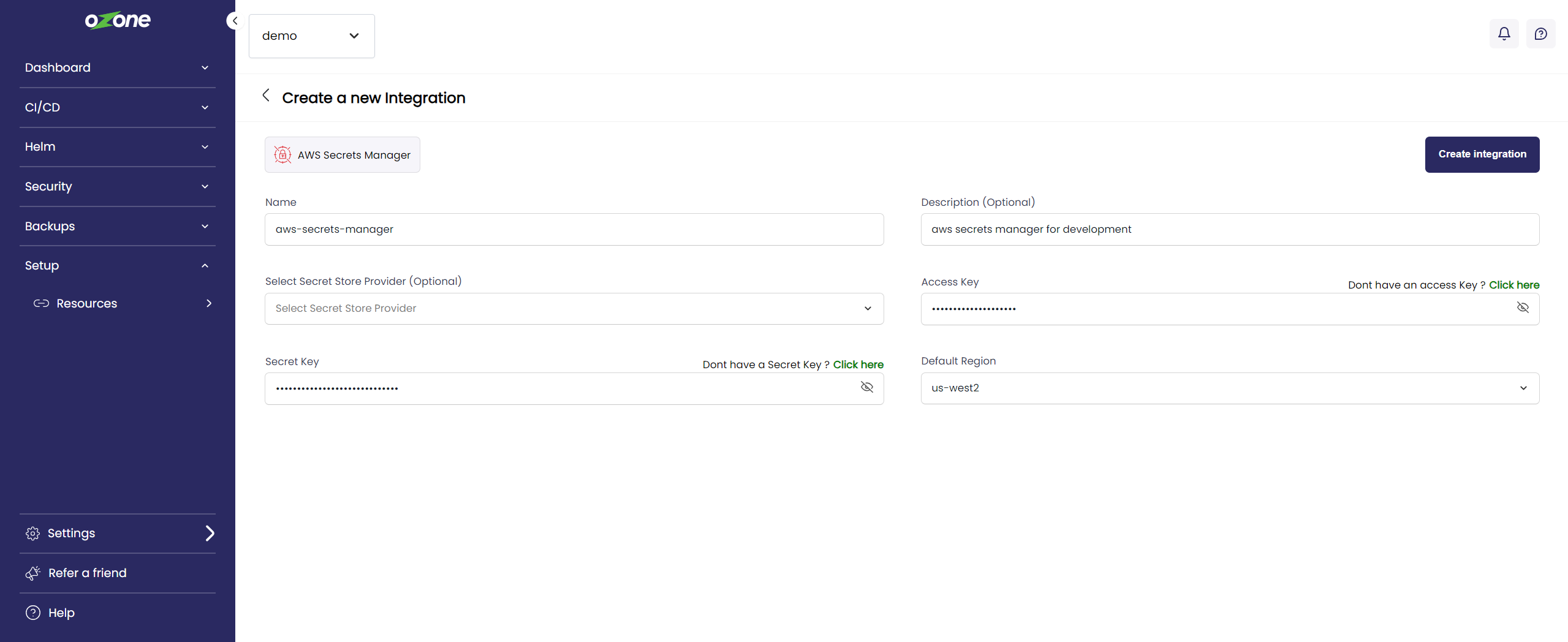1\. Enter the details to establish a connection and click on Create integration