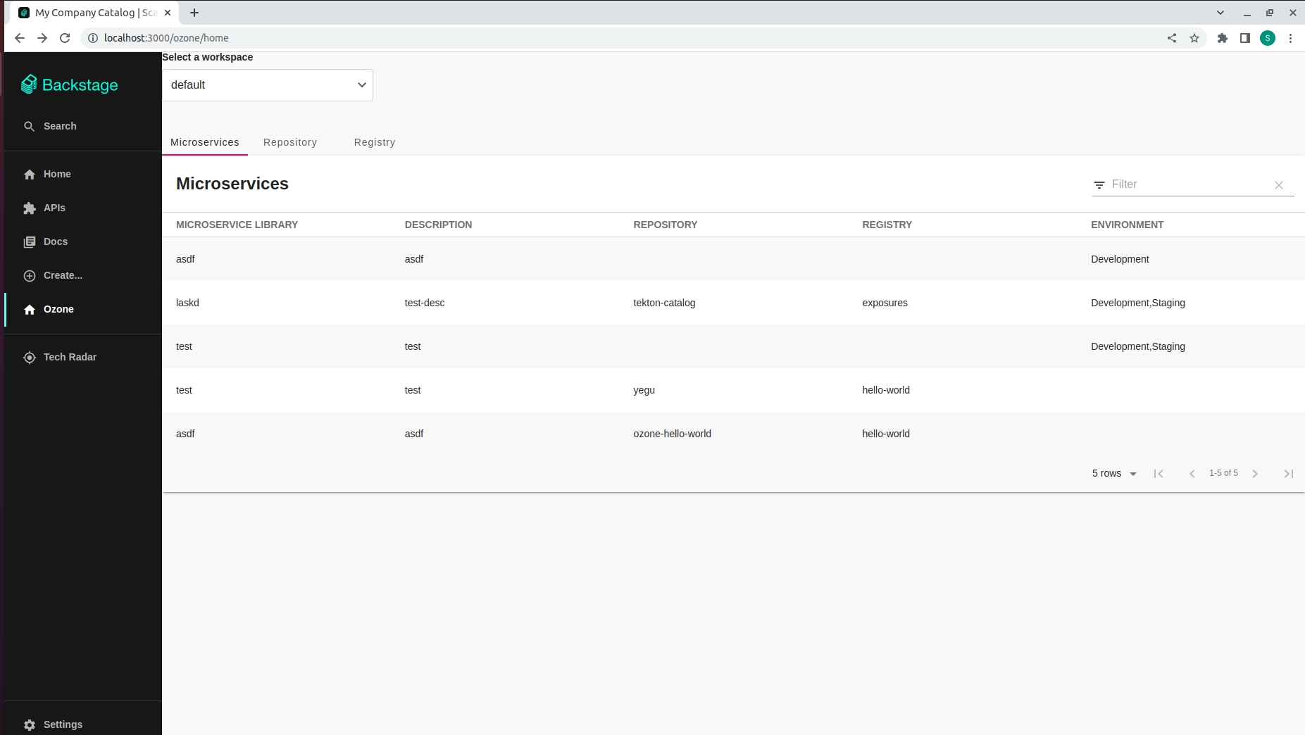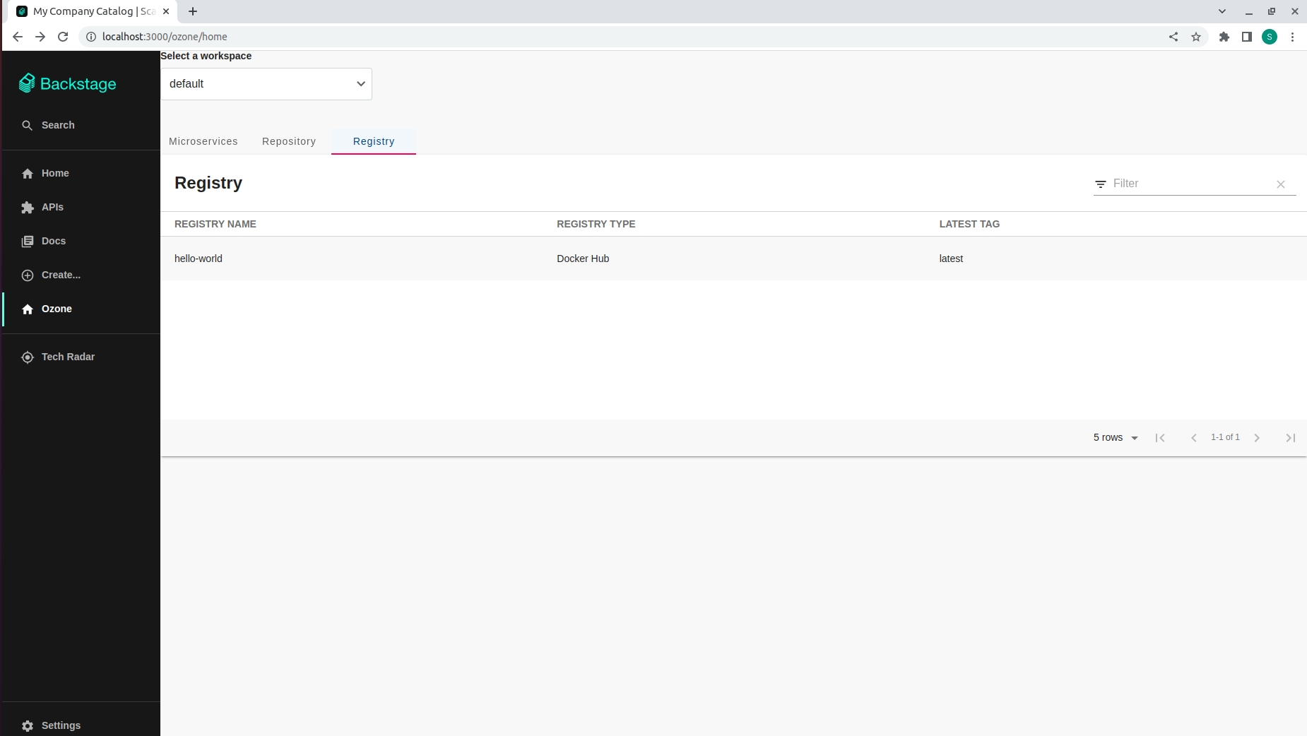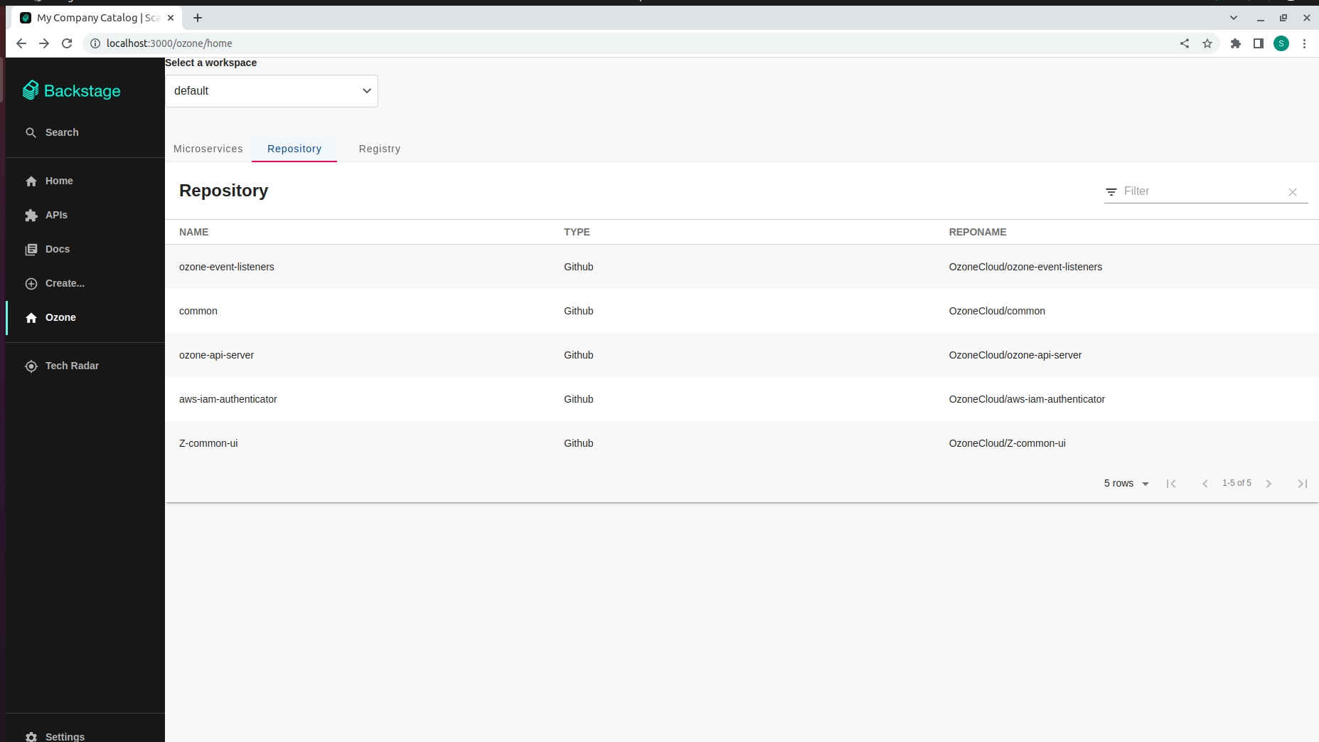 Microservice,Repository,Registry,pipelinesOn click of tabs will route to the lists accordingly